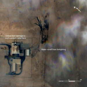 随后在3日晚些时候,法尔斯通讯社再次公布独家卫星图像,卫星图像显示,约旦穆瓦法克萨尔蒂空军基地的AN/TPY-2雷达遭遇摧毁,AN/TPY-2雷达的电力供应单元和冷却单元附近有过火痕迹,雷达天线有过火痕迹。