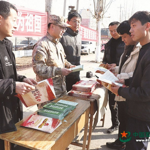 山东省宁阳县人武部工作人员在街头开展征兵宣传。侯中兴 摄