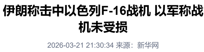 伊朗称“击中以色列F-16战机”,以军回应