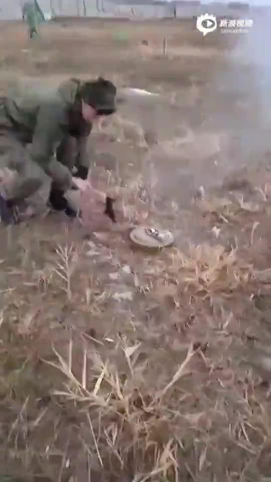 老铁双击666!俄罗斯士兵表演用斧子劈反坦克地雷