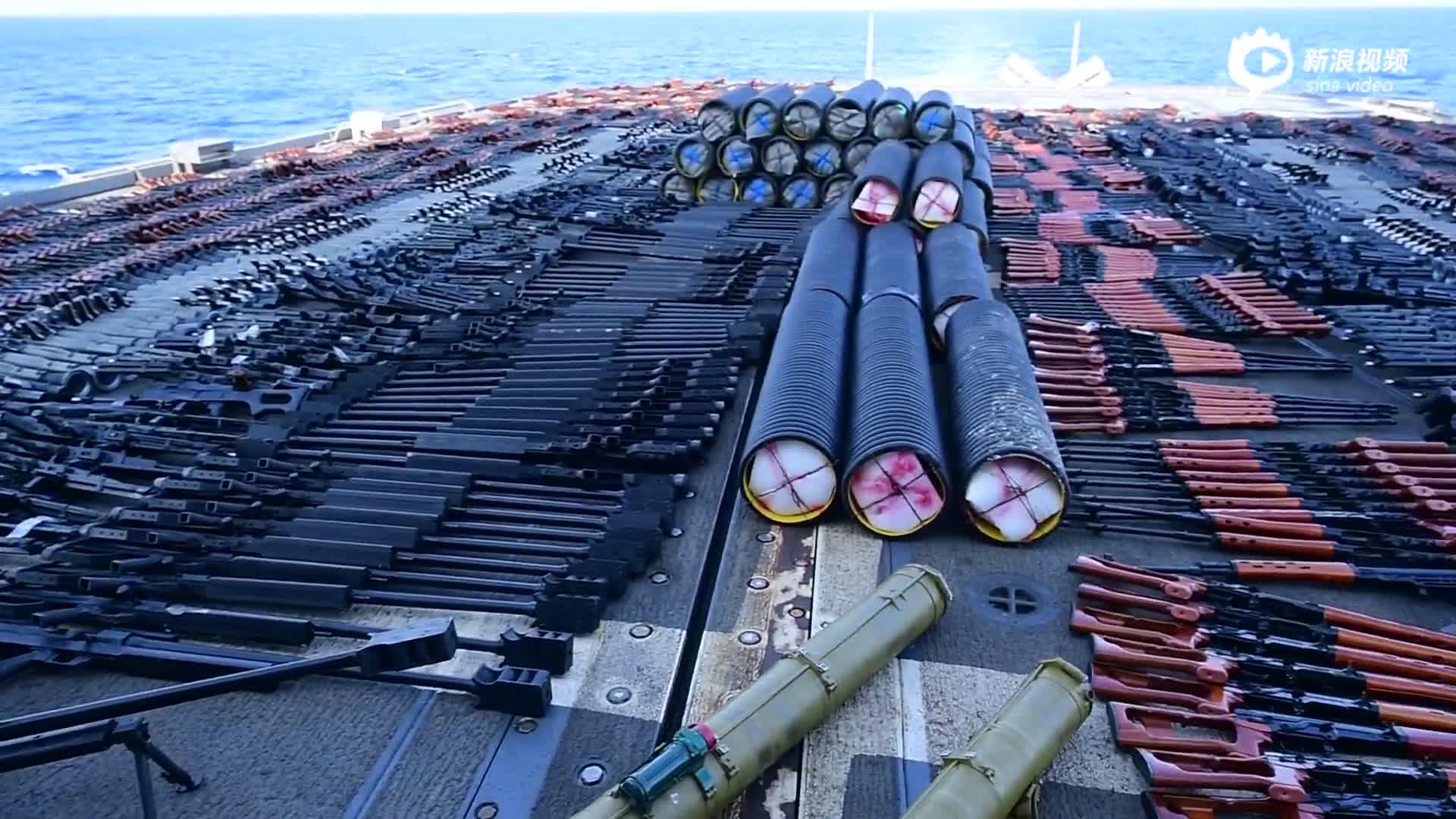 美军蒙特雷号巡洋舰在阿拉伯海公海拦截大批走私武器