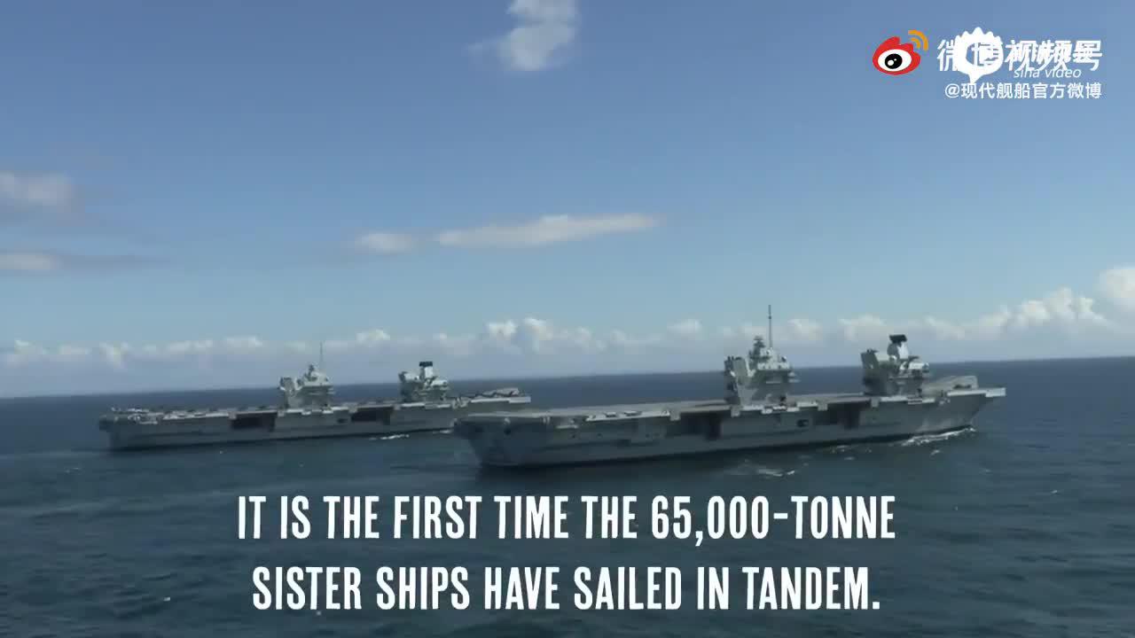 双航母并行!英国两艘伊丽莎白女王级航母编队航行