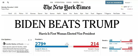 CNN、纽约时报宣布拜登获胜,由媒体宣布下任美国总统是谁,也是活久见