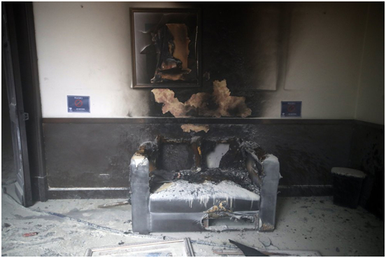 社交媒体上流传的视频显示,火焰从国会大楼的一扇窗户内喷出。俄罗斯卫星通讯社还提到,国会大楼的部分区域也被涂鸦覆盖。关于国会大楼的损毁情况,美联社称,大楼的破坏程度尚不清楚。