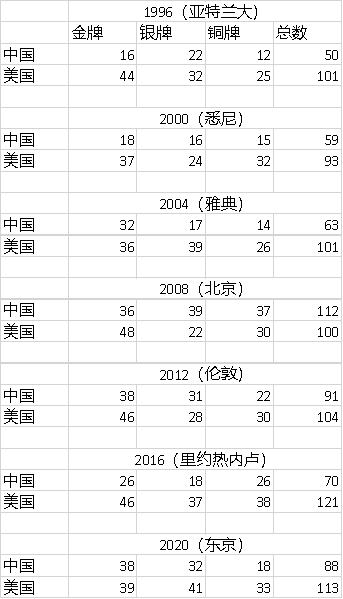 不难看出,美国的金牌和奖牌总数一直比较稳定。中国的金牌数即使不算北京奥运的“东道国红利”,也一直在稳步上升。但要是说过去几届(除北京奥运)的问题一直是“中国的金牌数能超过美国吗”,在东京奥运上,已经变为“美国金牌数还能赶上中国吗”了。除了几个很可惜但情有可原的金牌丢失外,中国队有不少意外的收获。美国队也有不少意外的丢失。但这些意外都不改变大趋势:中国的金牌数在稳步追赶美国,稳定地坐二望一并不断缩小差距,像里约奥运会那样英国金牌数略超中国的情况只会是例外。