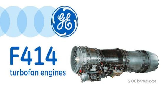 通用动力的F414是一款输出动力10500–22000磅 (47–98千牛)有后燃器的涡轮扇发动机。 F414发动机是以为麦克道格拉斯F/A-18黄蜂式战斗攻击机所研制的F404发动机为基础及其衍生版无后燃器的F412发动机所改良而来,现用于(现波音公司)F/A-18E/F超级大黄蜂舰载战斗攻击机上。