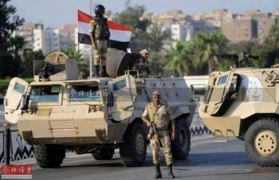 资料图:埃及安全部队在街上维持治安。