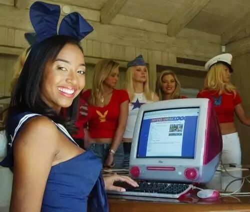 2003年3月,《花花公子》借战争作秀,推出了为战地美军送书的“犒劳活动”。在伊拉克战场上的美国大兵只要按照规定与该杂志取得联系,就可以得到有美女模特亲笔签名的图片,还可以跟“花花女郎”们通过e-mail进行“网上交流”。