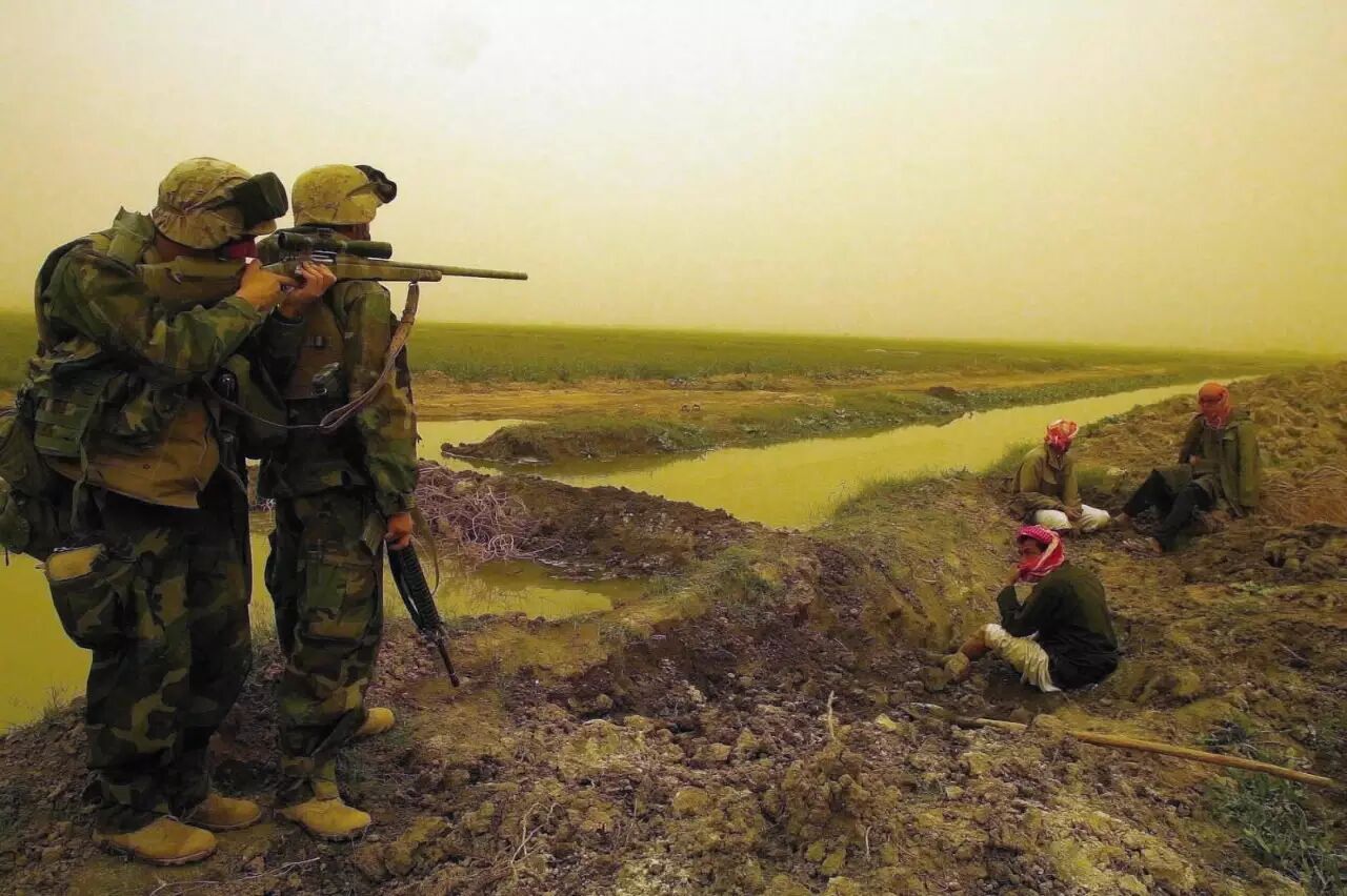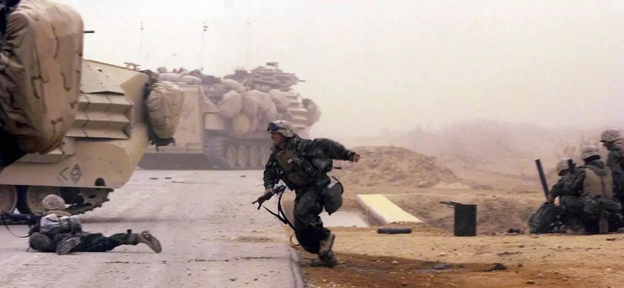 2003年3月26日,美军继续冒着沙尘暴向纳杰夫推进,一路上不断叫住伊拉克平民问话。“伊拉克即将面临战争,我们不能一味的防御,我们不会屈服于侵略者,我们会打垮他们,消灭他们……”