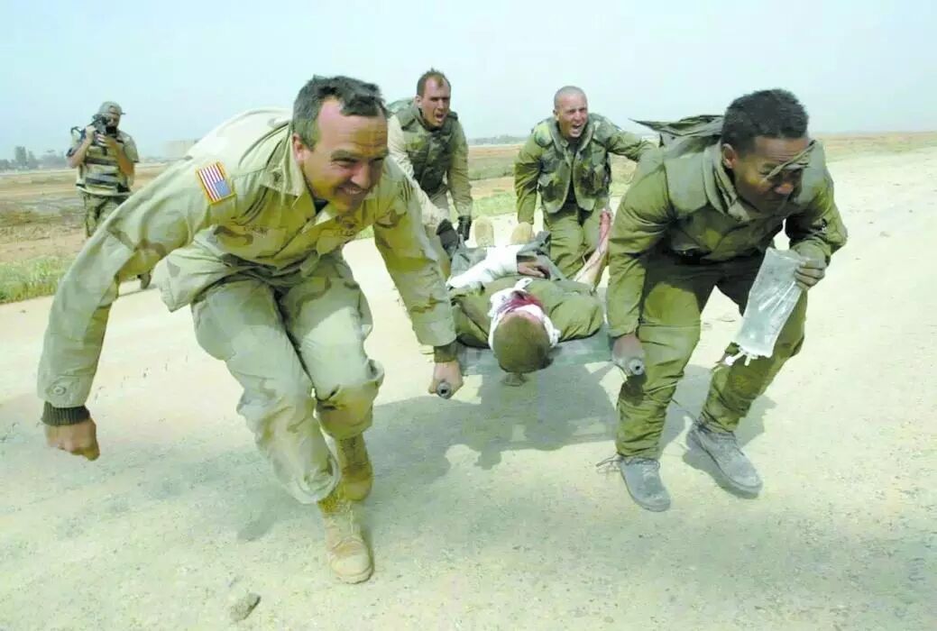 2003年4月6日,美国士兵和军医在伊拉克首都巴格达郊外抢救一名受伤的美国随军记者。在伊拉克,你不知道死亡何时会降临,更不知道哪一种死法是你的归宿。