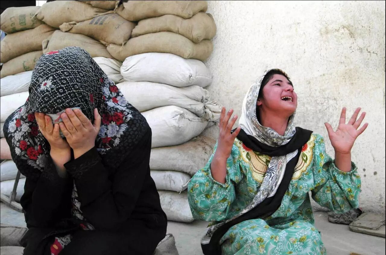 2003年4月11日,两名伊拉克妇女坐在巴格达街头为在战争中死去的亲人失声痛哭。这里是地狱