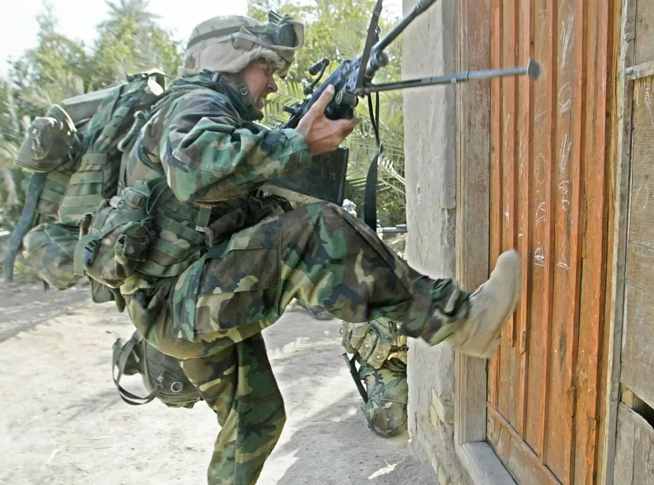 2003年3月23日,美英联军在纳西里耶郊外靠近幼发拉底河的居民区进行的一次挨家挨户搜寻行动。