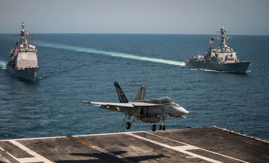 “卡尔·文森”打击大队与韩国海军在西太平洋举行联合演习5月4日,“卡尔·文森”号打击大队与韩国海军济州基地的第7机动战团第73机动战队、木浦基地的第3舰队第31驱逐战队进行了联合演习。上图中从远到近依次为:美国海军尼米兹级核动力航空母舰“卡尔·文森”号、韩国海军KDXIII型导弹驱逐舰“西厓柳成龙”号、韩国海军KDXI型导弹驱逐舰“杨万春”号。这场演习原定于4月20日左右举行,“跳票”半个月的联合演习,威慑效果大减。