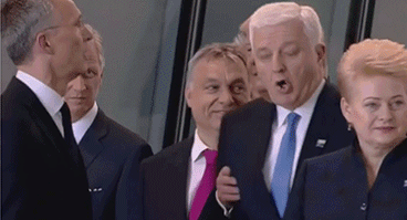 据美国广播公司报道,在布鲁塞尔举办的北约峰会上,与会领导人齐聚北约新总部大楼交接仪式,准备拍一张大合影。几位领导人正聊着,特朗普一手把前面的黑山共和国总理马尔科维奇推到一边,自己站到了最前面。