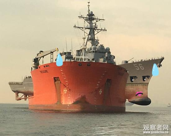 [观察者网综合报道]美国麦凯恩号又出事了。此前在新加坡与油槽船相撞的美国导弹驱逐舰麦凯恩号,在由半潜船“财富号”运往日本横须贺基地途中出现两处新伤,已改道前往菲律宾作进一步检查,确定是否需要额外的维修工作。目前原因尚在调查,不排除受台风天气影响。