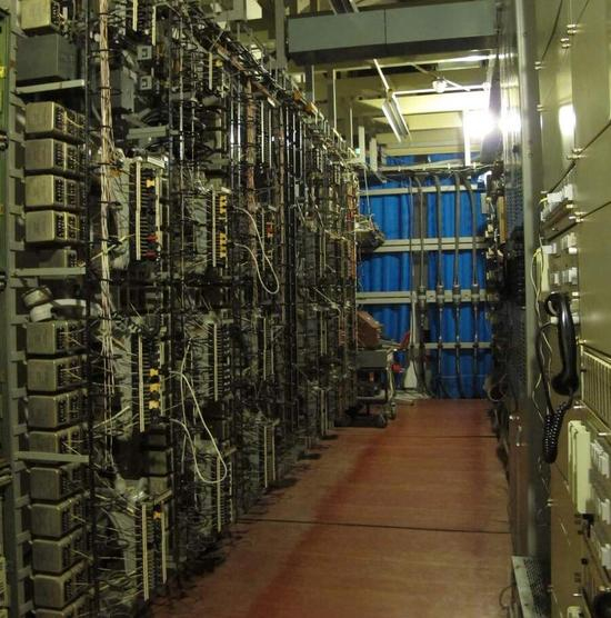 如今,在地堡中仍能看到许多落满尘土的电话,这些线路原先可直通莫斯科。通过对流层电台,甚至可以在大规模核爆中向后方传送情报。但托尔斯滕教授还强调说:“相关的俄文档案还将封存68年,我们目前还无法知道这座设施的具体用途。” 图为地堡内的电话总机室,从设备布置的密集程度能猜到这里的指挥机能不同寻常。