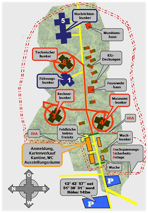冷战时期,当地还属于原东德领土,据当地居民回忆,20世纪70年代,曾有一支隶属于东德人民军(NVA)的军方工程队进入当地森林中,他们先是拉起一道6千米长的铁栅栏,并通上6000伏高压电,随后使用挖掘机在森林中挖出深坑,浇灌混凝土墙,之后开始在地下铺设电力系统,科萨地堡于1979年完工,占地面积75万平方米(相当于105个足球场)。图为科萨地堡分布图,至少有6个大型碉堡区,可见规模相当可观。