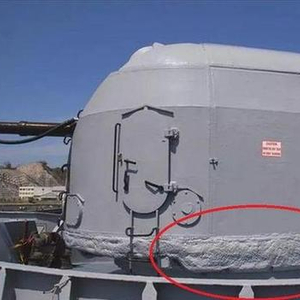 这种沥青材料的粗糙密封工艺,造成舰炮炮塔壳体下沿的龌龊观感,也经常出现在俄国舰艇上。而中国和西方舰炮就很少出现这种情况。