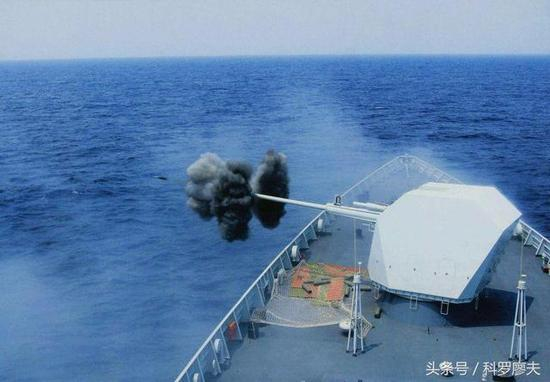 中国052D导弹驱逐舰所使用的H/PJ38型单管130毫米舰炮,外观处理整洁漂亮。