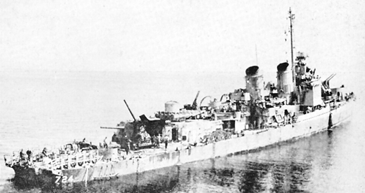 据该舰的一名军官在2010年撰文回忆,当时他建议舰长弃舰,当时该舰“甲板上到处是飞机的残骸和残缺不全的尸体,多门炮已经被击毁,雷达停止工作,舰员也有超过30人阵亡,而且战舰已经开始下沉。”但该舰的舰长弗雷德里克·贝克顿中校回应道:“见鬼的,不!我们还有炮能打,只要有一门炮还能打,我就绝对不会放弃这艘船!”