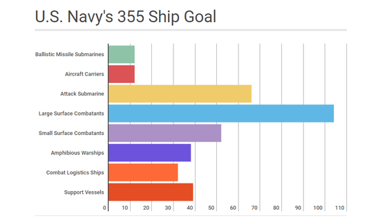 2018年版《30年舰船采办计划》描绘了美国海军在2050年代初期建成355艘舰队的路线图