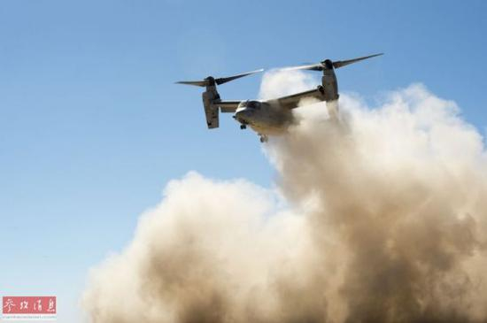 资料图:2017年1月5日在美国陆军、海军陆战队与MV-22“鱼鹰在非洲吉布提展开演练。