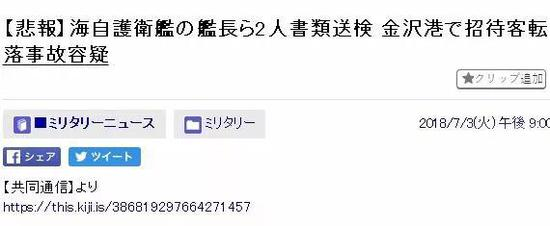 7月3日,日本共同社发布消息,“金沢海上保安部表示,因去年7月舰艇公开时候致人死亡的加贺号航母舰长、副舰长被立案起诉。”