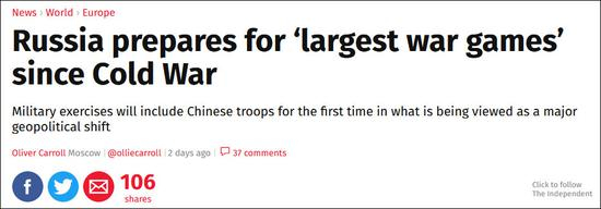 “东方-2018”演习将于月底在俄罗斯东部登场。《独立报》表示,这次演习的特别之处不仅在于巨大的规模,也在于有中国军队参加。