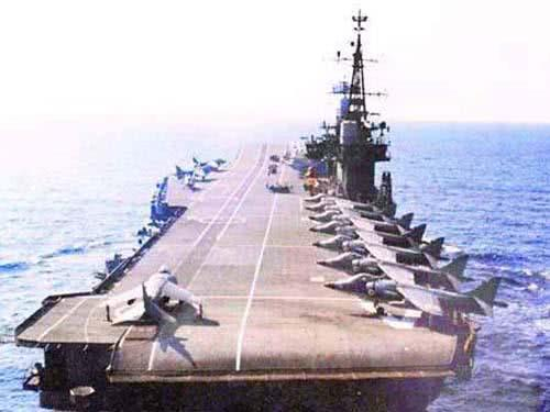 来看看此航空母舰的尊荣,该舰全长182.6米,宽22.5米,吃水6.25米,标准排水量7000吨,满载排水量11485吨。其动力装置为柴-燃联合形式,2台LM- 2500燃汽轮机,功率44250马力,2台MTU16V1163TB83柴油机,功率11780马力,双轴双桨,最大航速26节,续航力为10000海里/12节。它的标准载机为12架AV-8S“鹞Ⅱ”垂直起降战斗机或14架“海王”直升机(也可以是6架“支奴干”直升机)。舰员编制为455人,航空人员为146人。“差”舰的动力系统仅相当于一艘3000吨级的护卫舰水平,最高航速为26节。