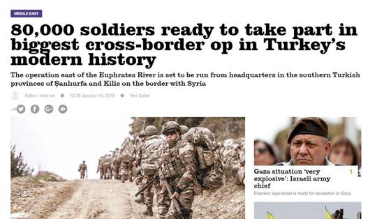 据土耳其保守派媒体新黎明报(Yeni?afak)的报道,土耳其陆军调动了8万名士兵准备执行土耳其近代史上最大的跨境军事行动。