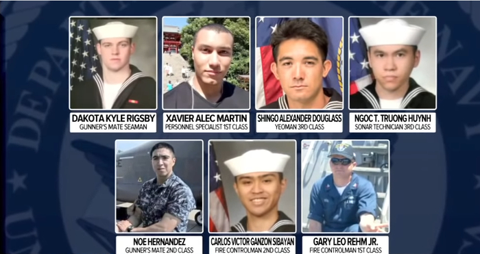 7名在事故中死亡的美国海军士兵 图片来源:ABC视频截图