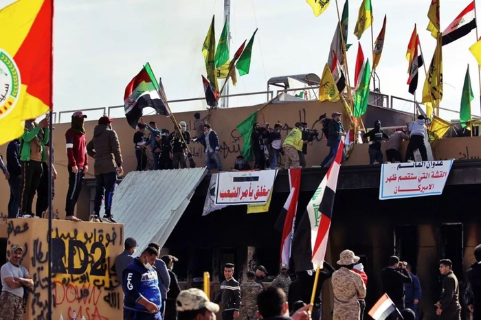 12月31日,数千伊拉克人包围了位于巴格达绿区壁垒森严的美国使馆,纵火、投掷石块,与安保人员及伊拉克政府军发生严重冲突,数十人死伤。虽然没有美方人员受伤,但美国使馆遇袭引起了华盛顿的愤怒。