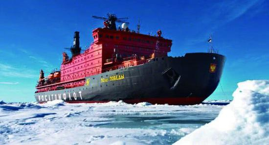 图片说明:俄罗斯核动力破冰船“胜利50周年”号。