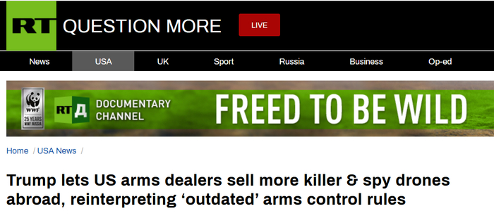 RT称,此前大型无人机在美被归类为与巡航导弹相似的类别,并受到严格的出口限制,此举则标志着导弹技术控制制度(MTCR)发生重大变化。根据此前导弹技术控制制度(MTCR),美国禁止向外国政府出售无人机。