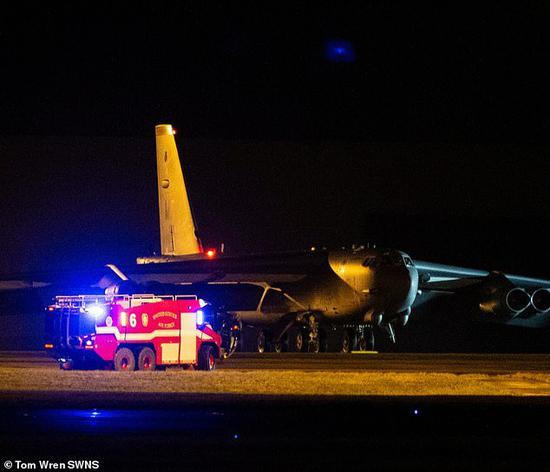 稍早前《每日邮报》报道称,美国空军一架B-52轰炸机在地中海上空飞行时发动机出现了故障,正在伍斯特郡上空转圈消耗燃料以减轻飞机重量,减轻起落架的压力,之后准备在英国皇家空军费尔福德机场紧急降落。
