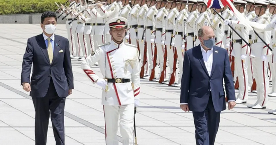 华莱士访日,在岸信夫陪同下检阅自卫队 图 | 共同社
