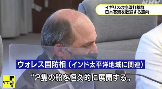 英国防相华莱士和日本防相岸信夫在7月20日于东京见面后,英国政府网站发布消息称,今年9月,英国航母打击群抵达日本后,将于今年下半年在亚洲海域永久部署两艘军舰。