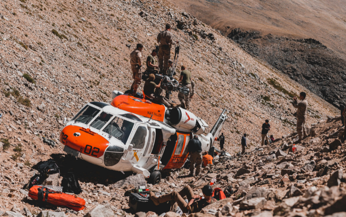 在山区实施硬着陆的“海鹰”直升机