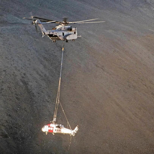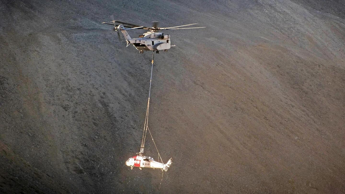美国海军陆战队中校卢克·弗兰克说:“美国海军陆战队第1作战测试和评估中队收到了美国海军安全中心的援助请求,请求将在山脊上硬着陆的MH-60S直升机运送回基地。”在评估了多个回收方案后,美国海军安全中心的目光转向了CK-53K“种马王”直升机。弗兰克解释说:“如果不对‘海鹰’直升机进行大规模拆解,其他机型都难以将其吊起。”