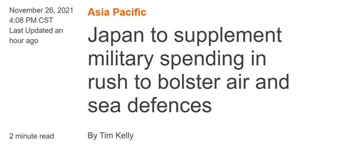 报道称,根据日本防卫省的说法,虽然增加军费支出很常见,但这笔增加的军费支出是有史以来规模最大的一笔资金。