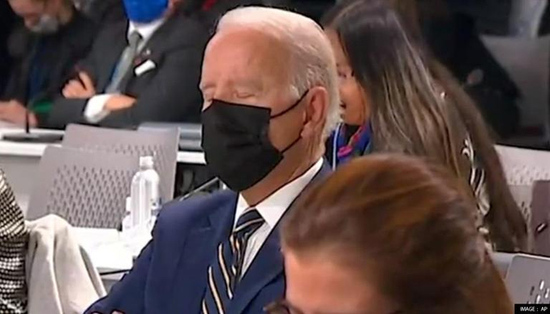 2021年11月2日,格拉斯哥气候峰会开幕式上,拜登被拍到闭眼约20秒
