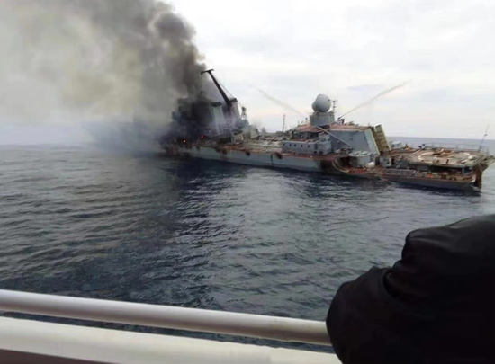起火爆炸的“莫斯科”号巡洋舰。