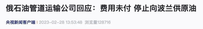 俄石油管道运输公司回应:费用未付,停止向波兰供原油