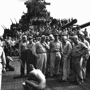 资料图:美军羞辱性地让日军战俘当众脱光洗澡