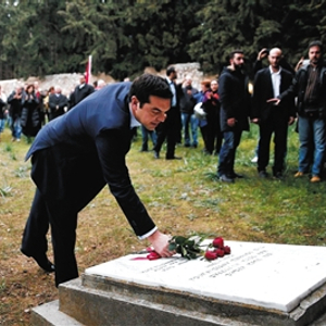 1月26日,希腊雅典,新任总理齐普拉斯在二战期间数百名希腊民众遭纳粹占领军屠杀的纪念地献花。