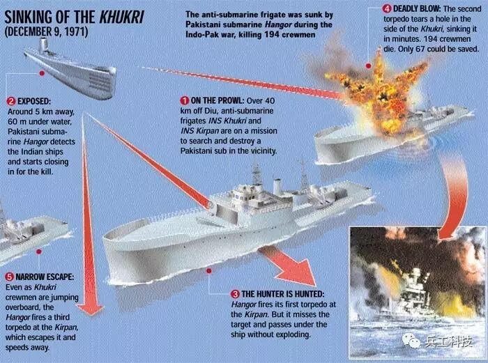 图注:国外网友绘制的“汉果尔”号潜艇击沉“库卡里”号反潜护卫舰示意图说起今天的巴基斯坦海军,可能有些乏善可陈,可是在历史上,他们曾经可是很牛的哦!在第三次印巴战争中,奉命南下作战的巴基斯坦“汉果尔”号潜艇成功击沉了印度“库卡里”号护卫舰,成为二战后第一艘击沉水面战舰的潜艇,这场战斗也成为巴基斯坦海军史上最荣耀的一刻。