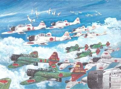 日本航母舰载机编队二战中航母大规模登上了海战舞台,逐步成为舰队交战的主力。人类历史上第一次航母对攻发生在南太平洋地区的珊瑚海,美国投入了第17特混舰队,包括列克星敦和约克城两艘航母,日军则投入了翔鹤和瑞鹤号两艘大型航母,以及祥凤号轻型航母。
