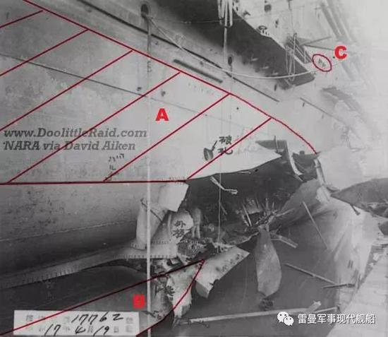 正在改造中的龙凤号轻航母被杜立特袭击部队炸出的大洞