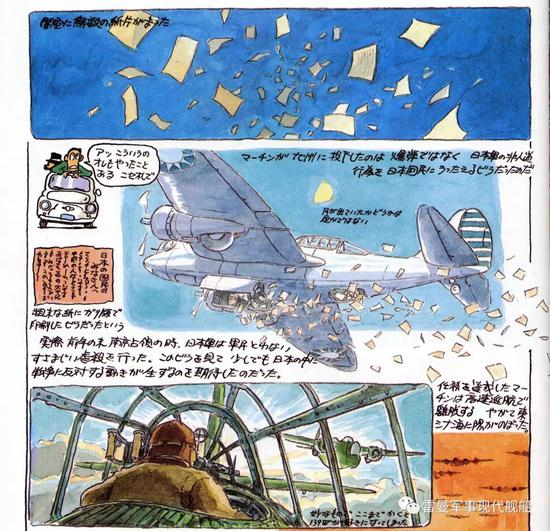 宫崎骏作为日本知名反战人士曾特地绘制了纸弹轰炸日本的连环画以兹纪念,画面下方这个飞行员的背影,就是长机1403号的无线电员吴积冲。