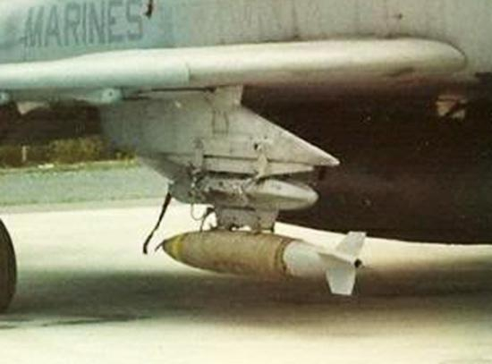 近日互联网上出现了一张奇怪的照片,美国海军陆战队第212战斗机中队(VMFA-212)的一架F-4S“鬼怪II”战斗机在主翼下方的TER三联弹射挂架上反向挂载了两枚MK-82低阻炸弹,也就是弹翼朝前,弹头朝后……